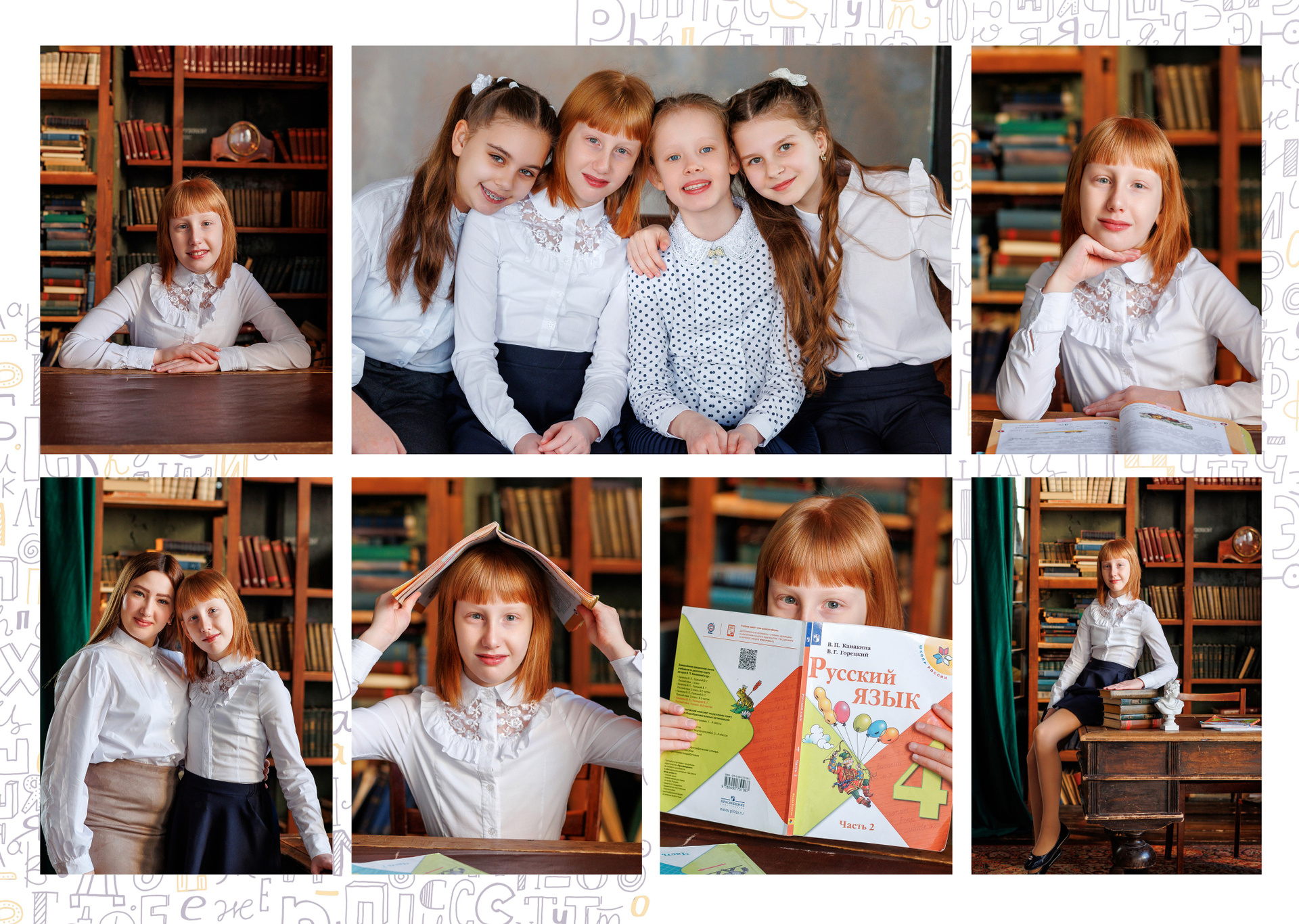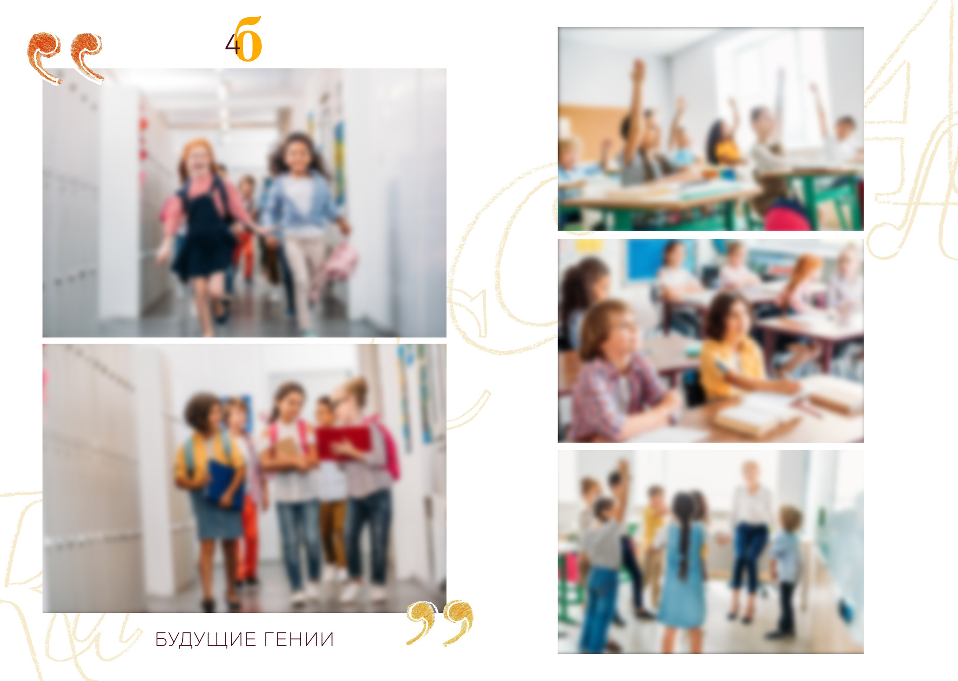 ■ 6 разворотов общей вёрстки с групповыми фотографиями всех детей