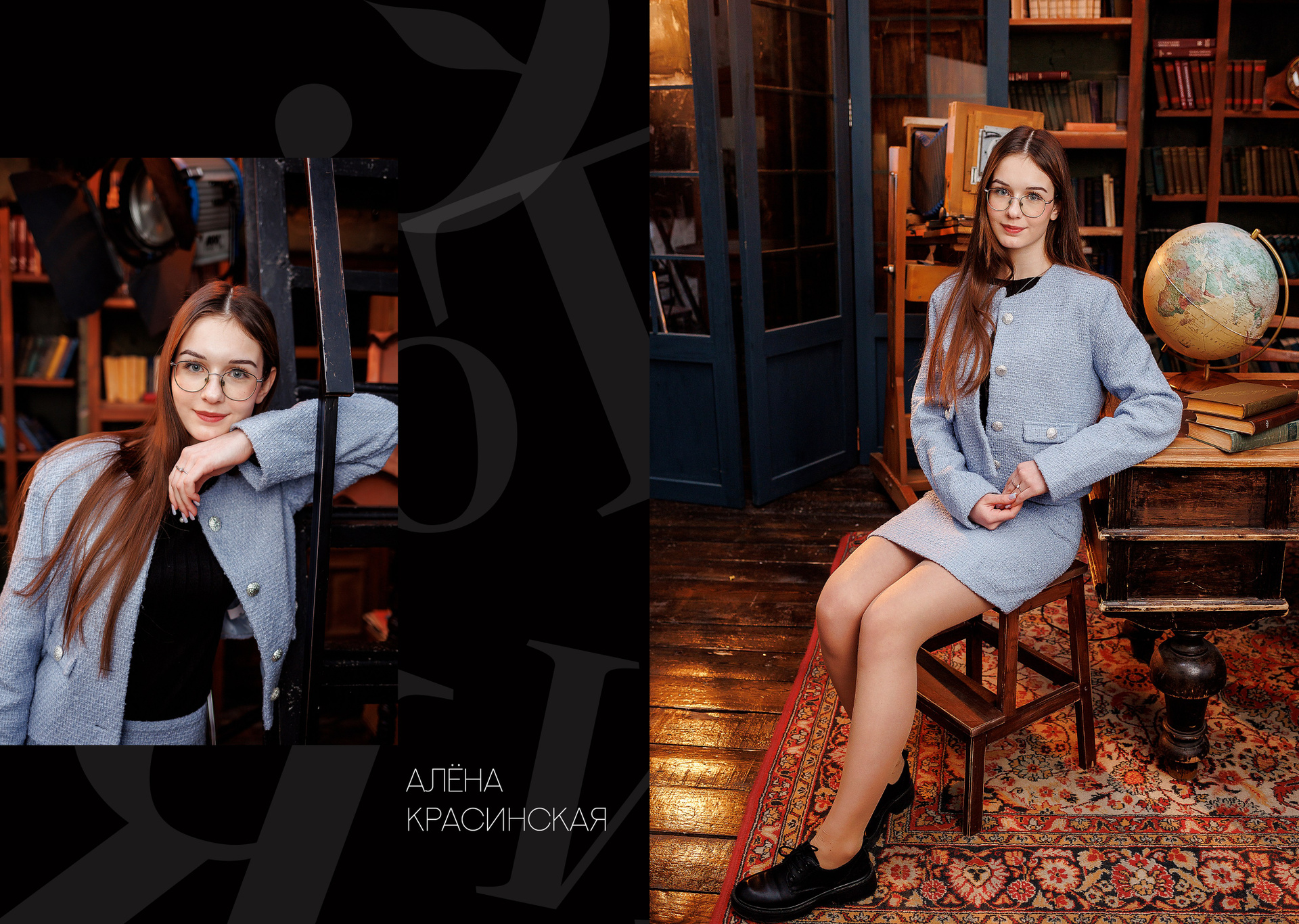 Фотосессия проходит в классе, а также по запросу в студии или локациях города.