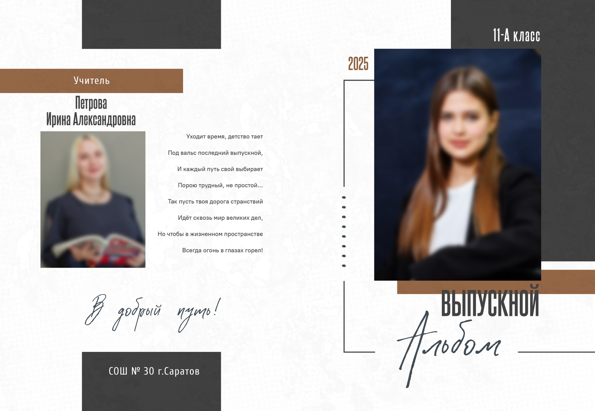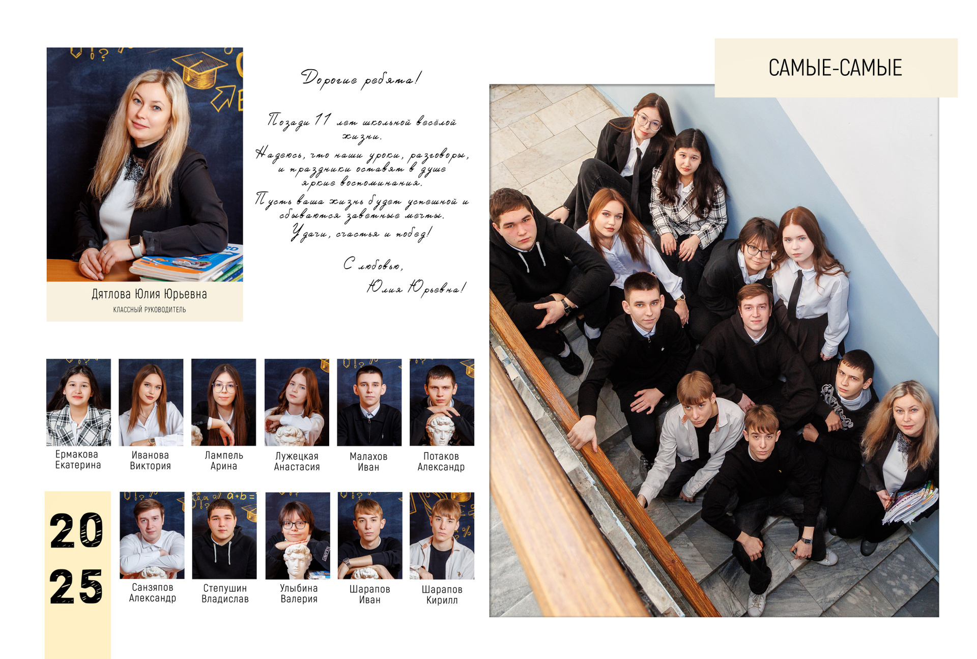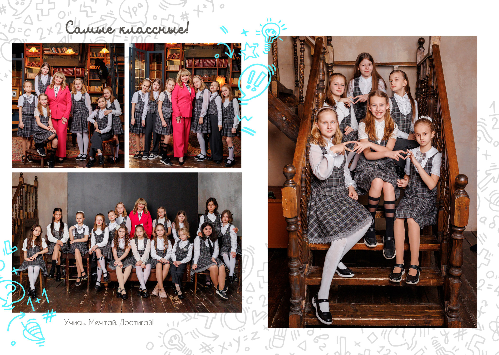На страницах останется не только портрет ребенка. Здесь будет первая учительница/классный руководитель, лучшие друзья и даже та самая парта, на которой вы рисовали сердечки. Это общая память всего класса, собранная воедино.