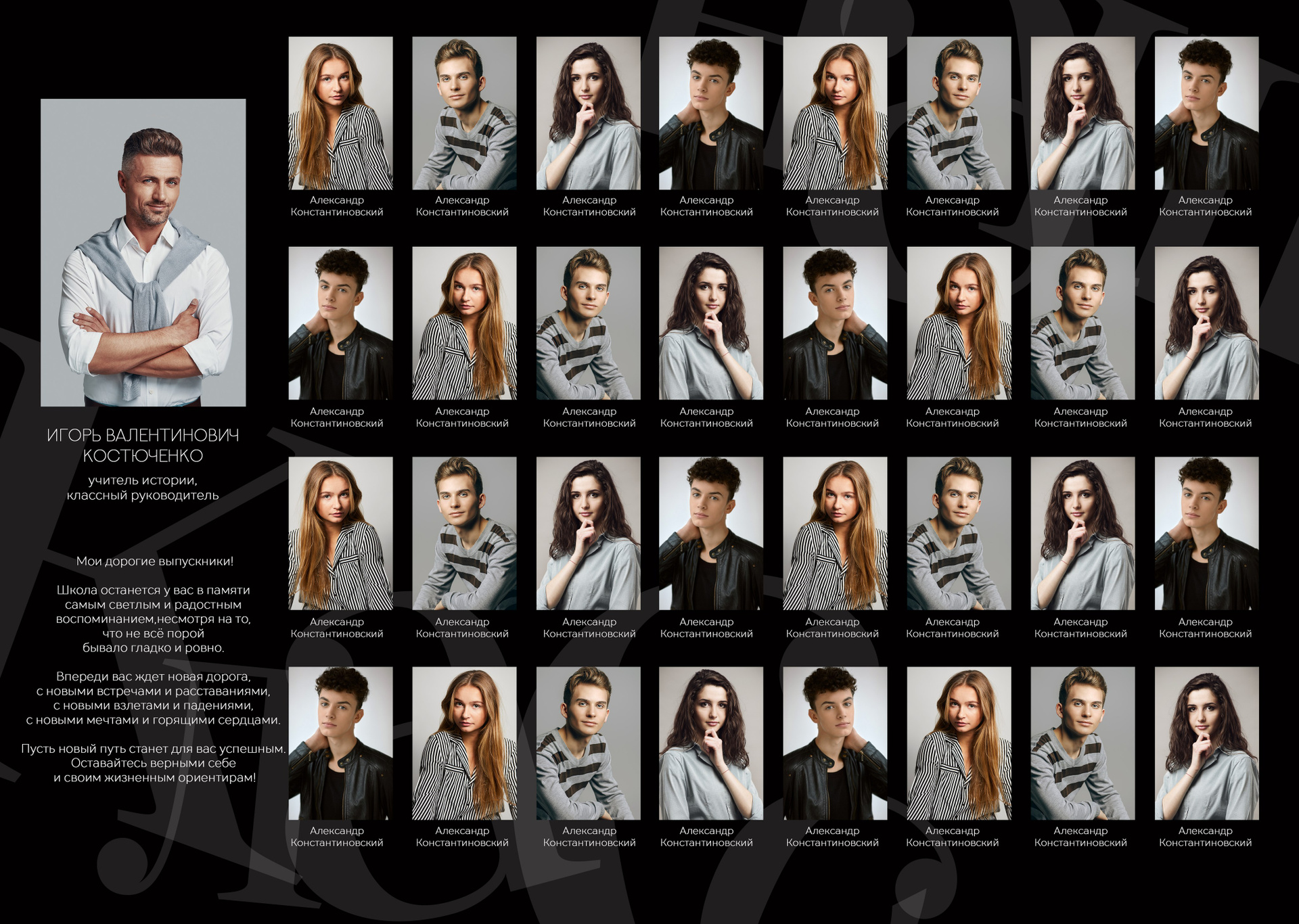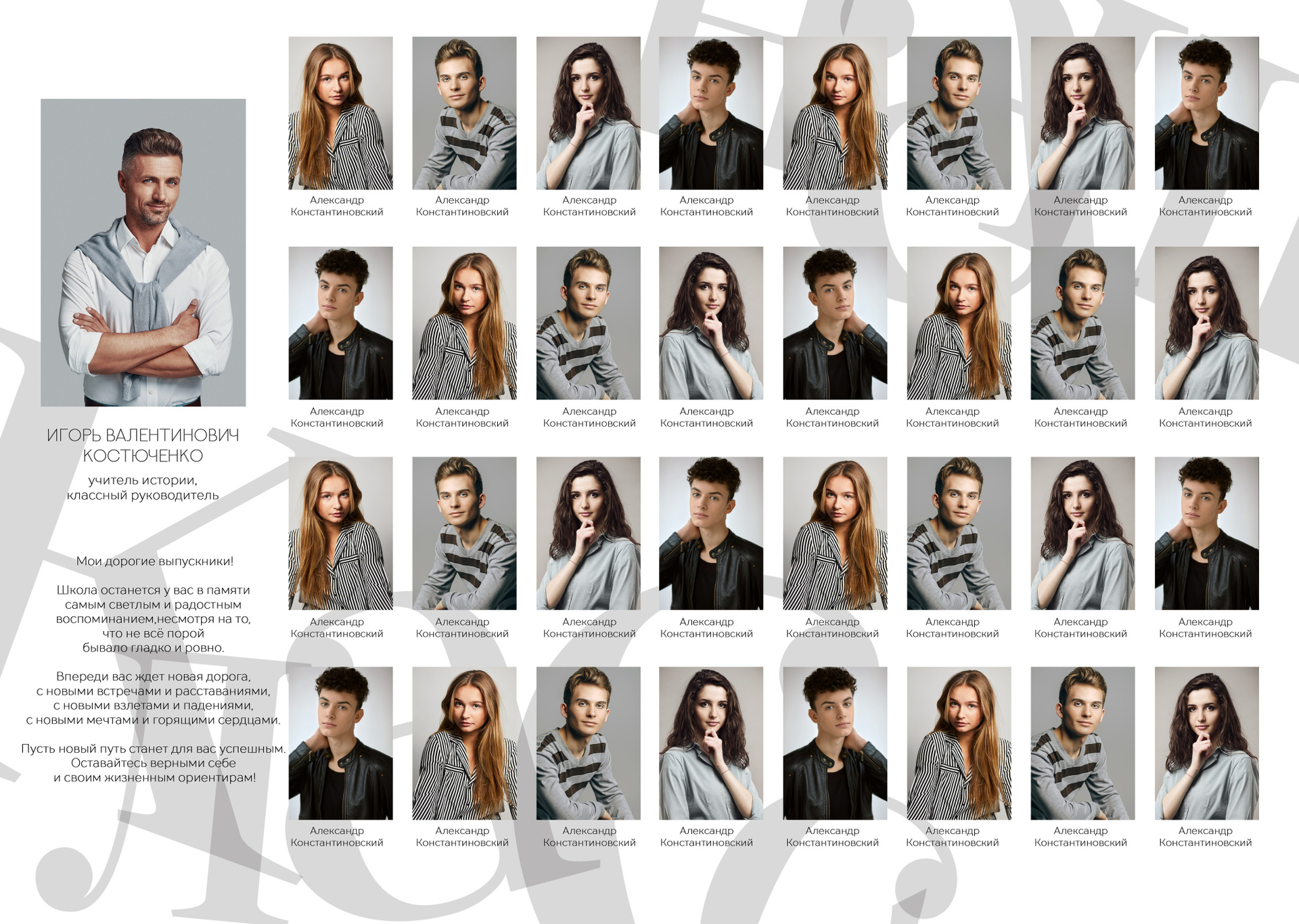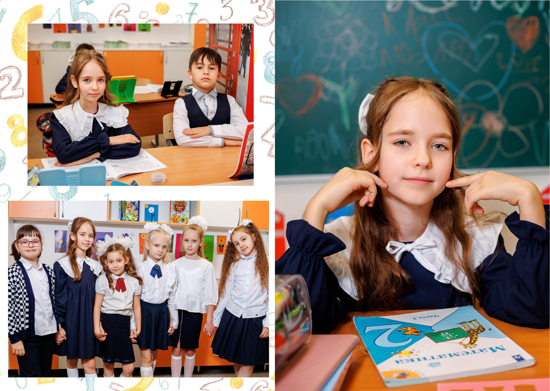 На страницах останется не только портрет ребенка. Здесь будет первая учительница/классный руководитель, лучшие друзья и даже та самая парта, на которой вы рисовали сердечки. Это общая память всего класса, собранная воедино.