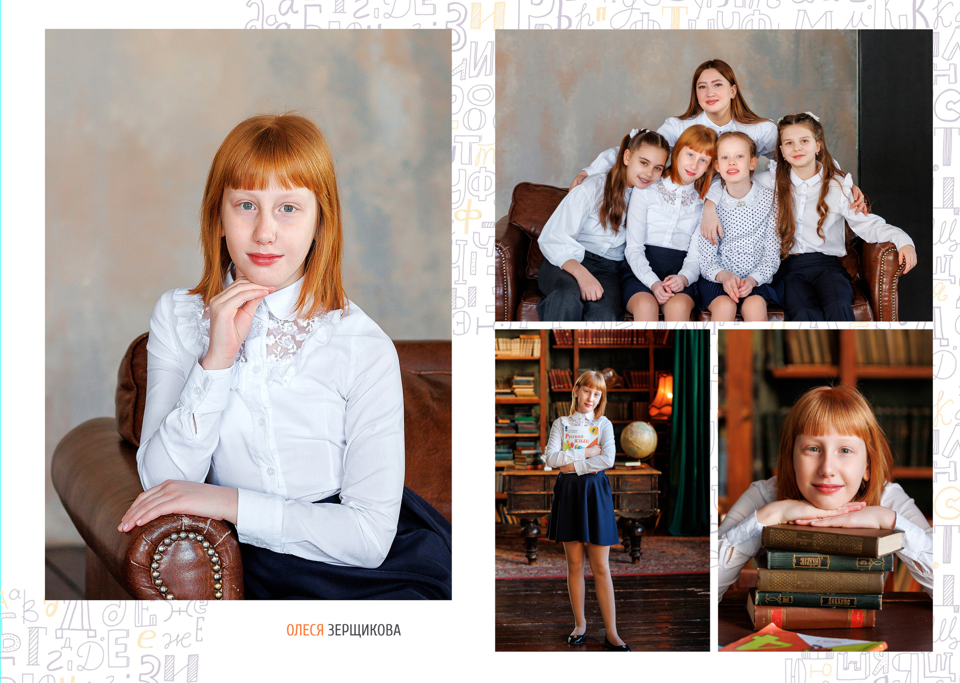 ■ 2 разворот портреты ребёнка и групповые фото (4-6 фотографий)